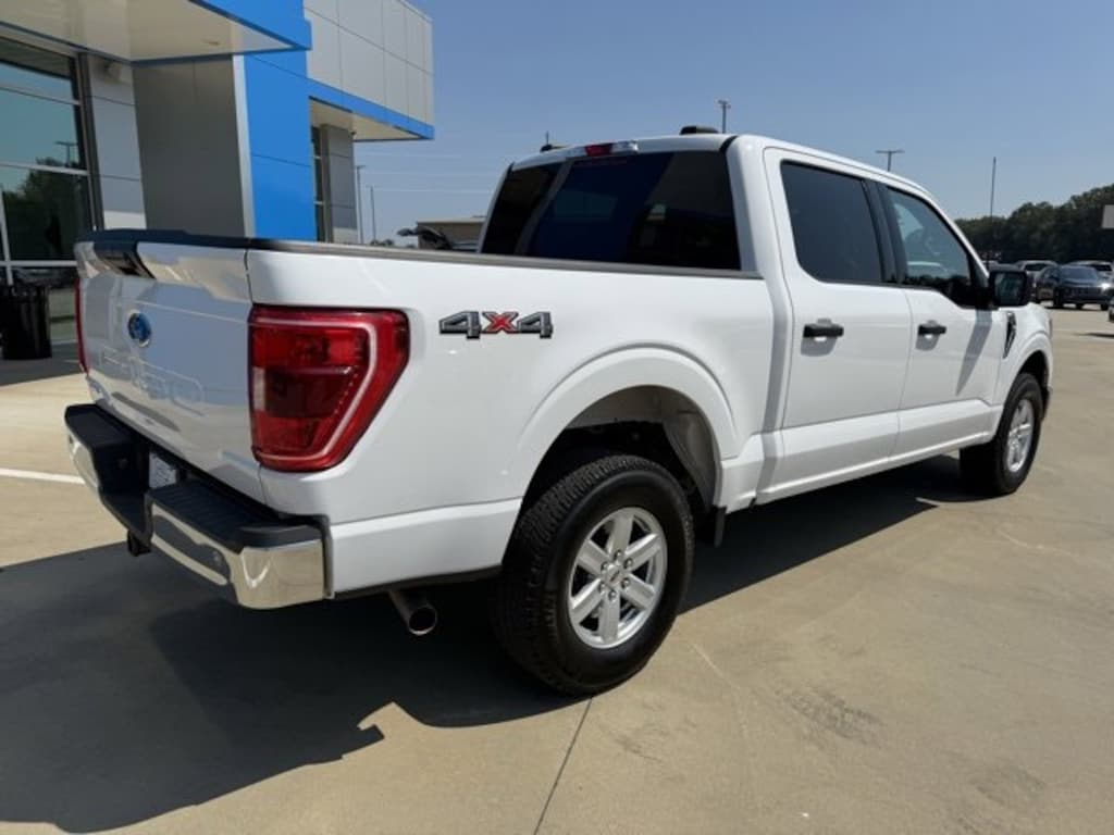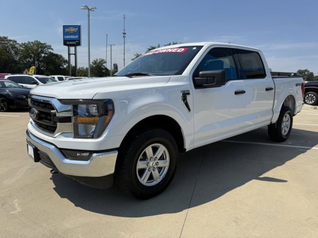 CARFAX One-Owner. Oxford White 2023 Ford F-150 XLT 5.0L V8 4WD 10-Speed Automatic The 2023 Ford F-150 comes with the following features; Equipment Group 301A Mid (Class IV Trailer Hitch Receiver), Trailer Tow Package (Integrated Trailer Brake Controller and Pro Trailer Backup Assist & Pro Trailer Hitch Assist), 4WD, 4-Wheel Disc Brakes, 6 Speakers, ABS brakes, Air Conditioning, Alloy wheels, AM/FM radio, Auto High-beam Headlights, Brake assist, Bumpers: chrome, Cloth 40/20/40 Front Seat, Compass, Delay-off headlights, Driver door bin, Driver vanity mirror, Dual front impact airbags, Dual front side impact airbags, Electronic Stability Control, Emergency communication system: SYNC 4 911 Assist, Exterior Parking Camera Rear, Front anti-roll bar, Front Center Armrest w/Storage, Front fog lights, Front License Plate Bracket, Front reading lights, Front wheel independent suspension, Fully automatic headlights, Heated door mirrors, Illuminated entry, Low tire pressure warning, Occupant sensing airbag, Outside temperature display, Overhead airbag, Overhead console, Panic alarm, Passenger door bin, Passenger vanity mirror, Power door mirrors, Power steering, Power windows, Radio data system, Radio: AM/FM Stereo w/6 Speakers, Rear reading lights, Rear step bumper, Rear window defroster, Remote keyless entry, Remote Start System, Security system, Speed control, Speed-sensing steering, Split folding rear seat, Steering wheel mounted audio controls, SYNC 4, Tachometer, Telescoping steering wheel, Tilt steering wheel, Tough Bed Spray-In Bedliner, Traction control, Tray Style Floor Liner (47W), Trip computer, Variably intermittent wipers, Voltmeter, and Wheels: 17 Silver Painted Aluminum. 4WD.