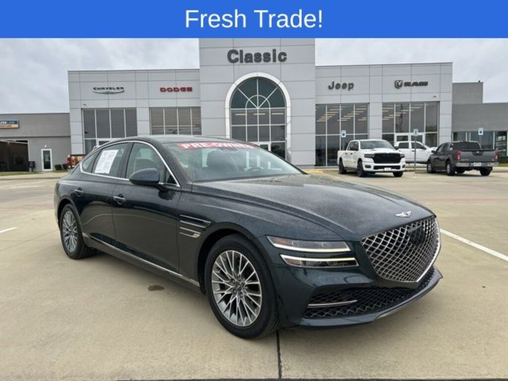CARFAX One-Owner. Classic CDJR in Texarkana is proud to offer this charming 2023 Genesis G80 in Blue. This 2023 Genesis G80 comes with the following features; Option Group 01, 12 Speakers, 4-Wheel Disc Brakes, ABS brakes, Air Conditioning, Alloy wheels, AM/FM radio: SiriusXM, Android Auto & Apple CarPlay, Anti-whiplash front head restraints, Auto High-beam Headlights, Auto tilt-away steering wheel, Auto-dimming door mirrors, Auto-dimming Rear-View mirror, Automatic temperature control, Bumpers: body-color, Compass, Delay-off headlights, Driver door bin, Driver vanity mirror, Dual front impact airbags, Dual front side impact airbags, Electronic Stability Control, Emergency communication system: Genesis Connected Services, Exterior Parking Camera Rear, Four wheel independent suspension, Front anti-roll bar, Front Bucket Seats, Front Center Armrest, Front dual zone A/C, Front reading lights, Fully automatic headlights, Garage door transmitter: HomeLink, Heated door mirrors, Heated Front Bucket Seats, Heated front seats, Illuminated entry, Knee airbag, Leather steering wheel, Leatherette Seating Surfaces, Low tire pressure warning, Memory seat, Navigation System, Occupant sensing airbag, Outside temperature display, Overhead airbag, Overhead console, Panic alarm, Passenger door bin, Passenger vanity mirror, Power door mirrors, Power driver seat, Power passenger seat, Power steering, Power windows, Radio data system, Radio: AM/FM/HD/SiriusXM Audio System, Rain sensing wipers, Rear anti-roll bar, Rear reading lights, Rear seat center armrest, Rear side impact airbag, Rear window defroster, Remote keyless entry, Security system, Speed control, Speed-sensing steering, Speed-Sensitive Wipers, Steering wheel memory, Steering wheel mounted audio controls, Tachometer, Telescoping steering wheel, Tilt steering wheel, Traction control, Trip computer, Turn signal indicator mirrors, Variably intermittent wipers, and Wheels: 18"x8.0J Alloy.